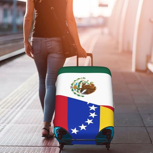 Travel Luggage Cover Half Mexico Half Venezuela Flag Fashion Washable Baggage Suitcase Protector Fit For Luggage Small 7