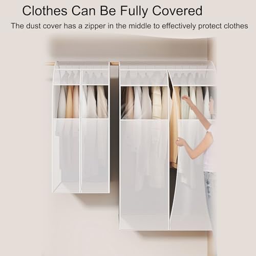 • Durable Material: The hanger cover is made of PEVA material, which is lightweight and breathable, washable, and can prevent dust, moisture, wrinkles and pet hair