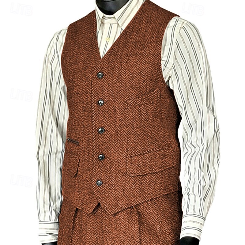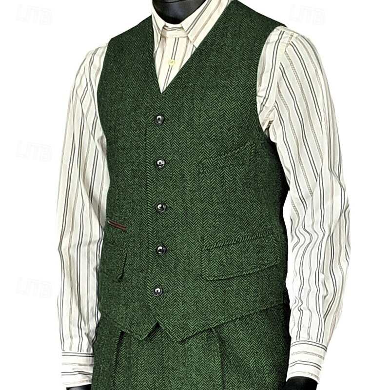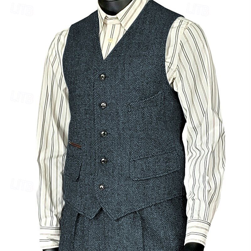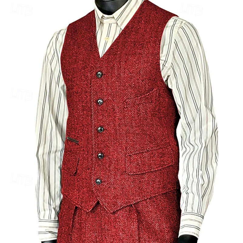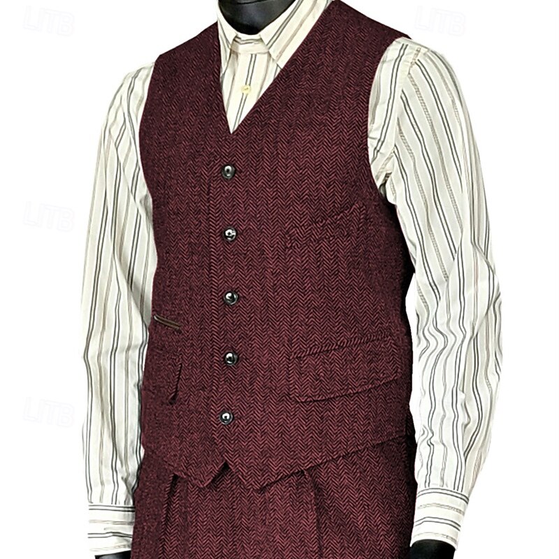 More information about Men's Vest Waistcoat Gilet Vacation Party Business Fashion Casual Spring Fall Pocket Buttons Polyester Comfortable Plain Single Breasted One-button V Neck Regular Fit Silver Black Wine Red Vest