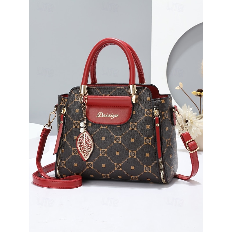 $32.99 - Elegant Women's Faux Leather Handbag with Red Accents and Gold Leaf Charm – Designer-Inspired Shoulder Bag with Adjustable Strap 2025. Shop for cheap Handbag & Totes online? Buy at lightinthebox.com on sale today!