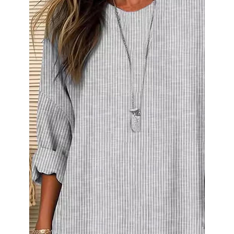 HOT ! Women's Shirt Cotton Linen Shirts Striped Daily Stylish Modern Long Sleeve Crew Neck Vacation Party Daily Patchwork Blue Gray Spring Fall