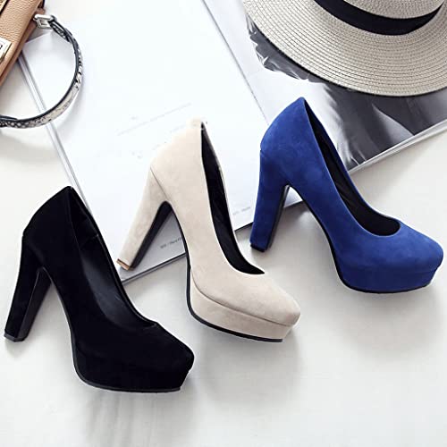 MIOKE Women's Round Toe Platform Chunky High Block Heel Pumps Suede Slip-On Casual Office Work Dress Shoes 5