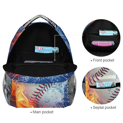 Nander Backpack Travel Fire Water Baseball School Bookbags Shoulder Laptop Daypack College Bag for Womens Mens Boys Girls 6