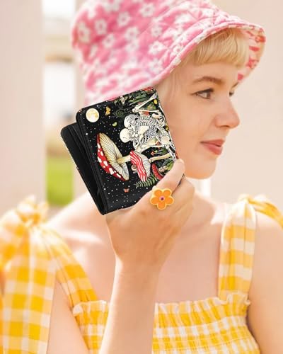 Bistup Girls Wallet Cute Leather Bifold Wallet Skull for Women Teen Girls Goth Horror Credit Card Cash Id Holder Rfid Blocking Mushroom Skeleton Bi Fold Small Wallets With Coin Pocket Slim Scary Cool 6