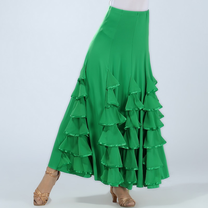 Ballroom Dance Skirts Pleats Pure Color Splicing Women's Performance Training High Spandex 13