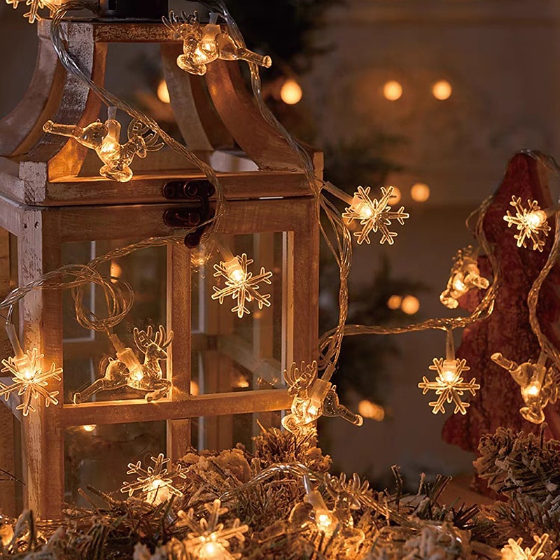 LED Christmas Elk Snowflake Fairy String Lights 6m 3m 1.5m Christmas Tree Star Lights New Year Christmas Party Holiday Home Garden Decoration Hanging Lights 12