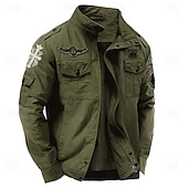 More information about Men's Cotton Embroidered Military Jacket Windbreaker with Shoulder Straps Long Sleeve Standing Collar Multi-Pockets Trucker Jacket Cross Print Tactical Outerwear