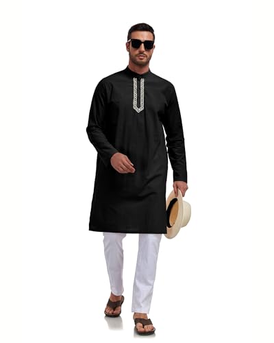 • 【Stylish Design】 Mens vintage kaftan thobe robe is feature with henley button up collar with embroidery design, knee length, long sleeve, side split,solid color,side pockets and classic fit. Enhance your overall appearance while providing a comfortable wearing experience