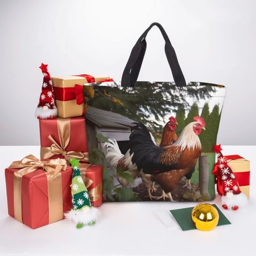 HOT ! BackYard Chickens Tote Bags for Women Canvas Tote Purse Large Shoulder Bag Aesthetic Shopping Bags Reusable Grocery Bag Hobo Bags Casual Handbags, Top Zipper Closure