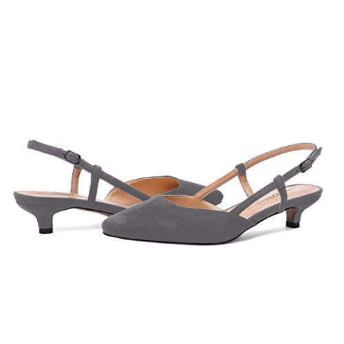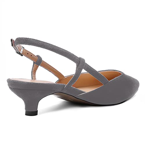 ROSERWISH Womens Cute Square Toe Slingback Suede Wedding Buckle Comfortable Kitten Low Heel Pumps Dress Shoes 1.5 Inch 1