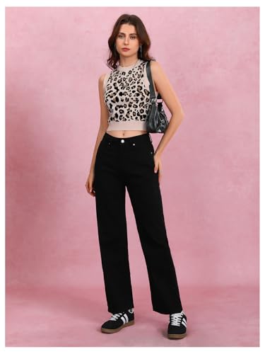More information about Women's Leopard Sweater Vest Round Neck Sleeveless Knitted Cheetah Pullover Top