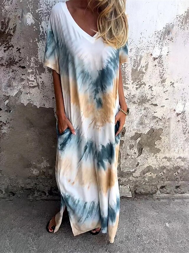 HOT ! Women's Casual Dress T Shirt Dress Tee Dress Tie Dye Pocket Print V Neck Long Dress Maxi Dress Stylish Casual Daily Vacation Short Sleeve Summer