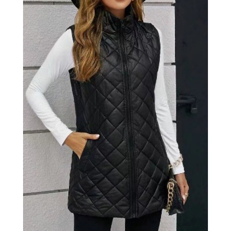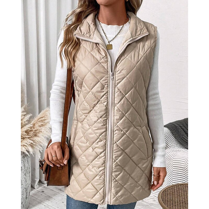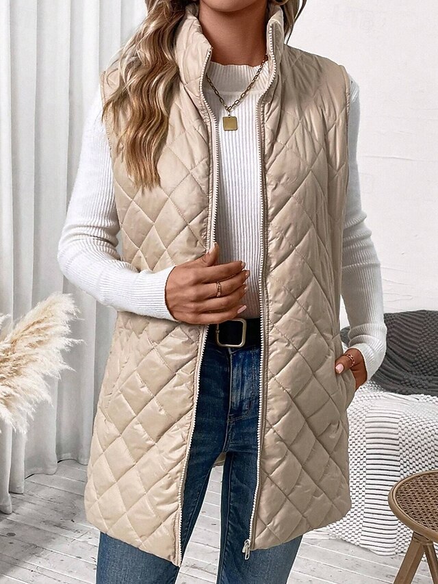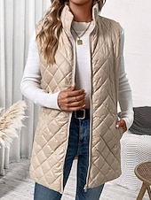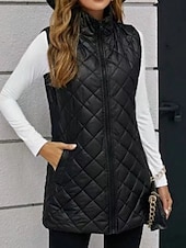 More information about Women's Vest Warm Comfortable Zipper Pocket Outdoor Casual Plain Holiday Weekend Zipper Long Stand Collar Regular Fit Sleeveless Outerwear Black Apricot Winter