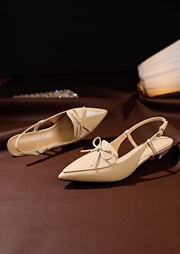 Zamikoo Kitten Heels for Women with Bow, Low Heel Slingback Sandals, Pointed Toe Loafer Pumps Shoes for Dress Work Office Casual 1.5 Inches 5
