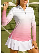 More information about Women's Gradient Stripes Sport Shirt Golf Polo Shirt Tennis Shirt Tennis Top Long Sleeve Zipper Floral UPF50+ UV Resistant High Elasticity Moisture Wicking Breathable Tennis Golf Pickleball Stand