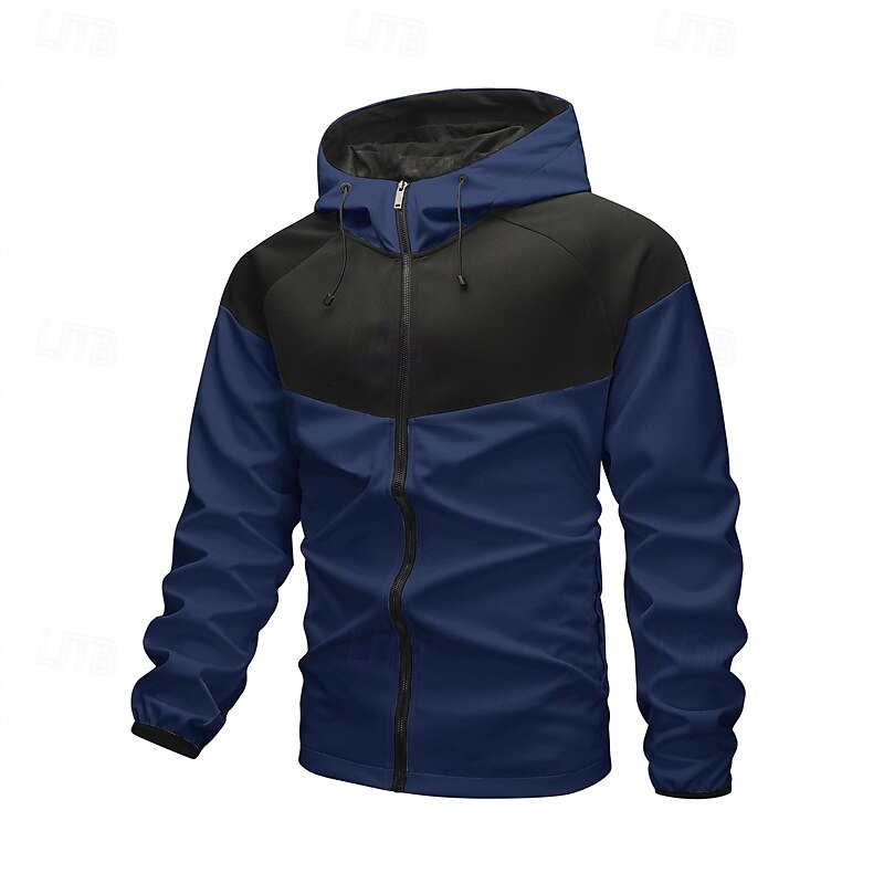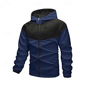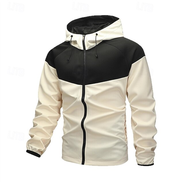 Men's Outdoor Jacket Raincoat Hoodie Jacket Hiking Jacket Vacation Daily Windproof Pocket Spring Fall Color Block Fashion timeless Hooded Regular Red Khaki Dark Blue Jacket