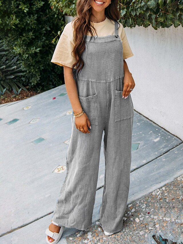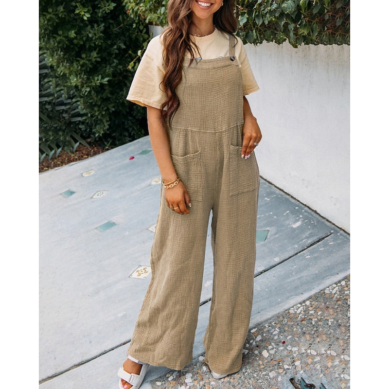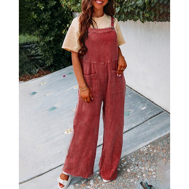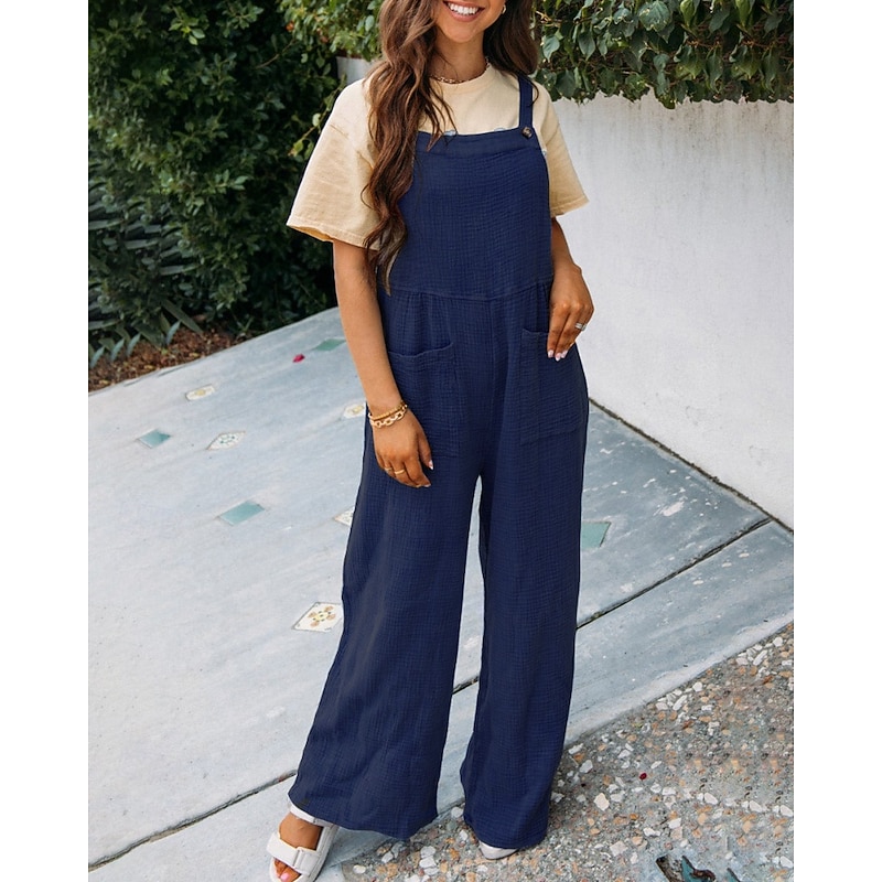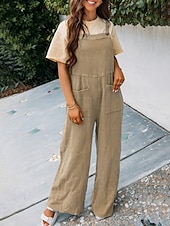 More information about Women's Normal Dungarees Jumpsuit Streetwear Solid Color Sleeveless U Neck Pocket Daily Going out Regular Fit Red Navy Blue Khaki Summer
