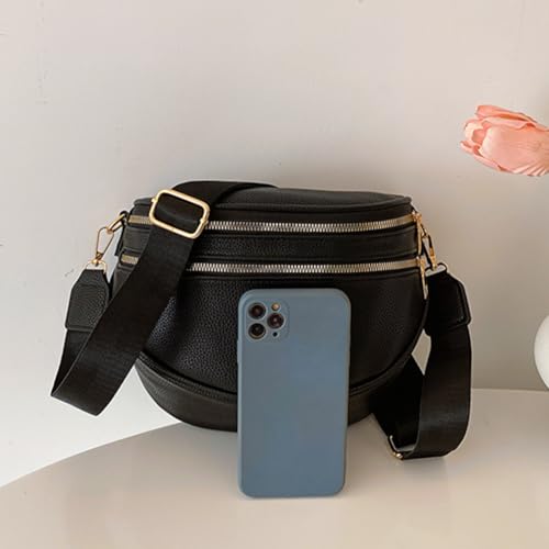 Spacious Bum Bags with Wide Strap PU Leather Shoulder Bag for Women (Black) 1