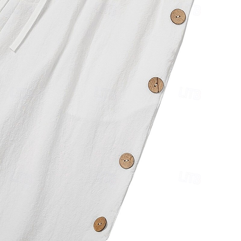 More information about Men's Shorts Linen Shorts Summer Shorts Beach Shorts Elastic Waist Drawstring Buttons Plain Comfort Breathable Knee Length Outdoor Daily Beach Vacation Fashion Black White Inelastic