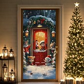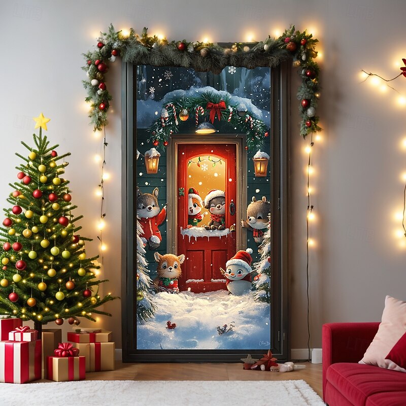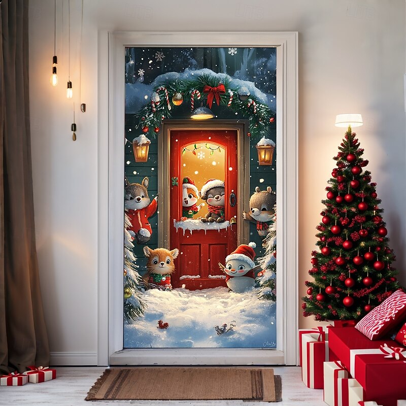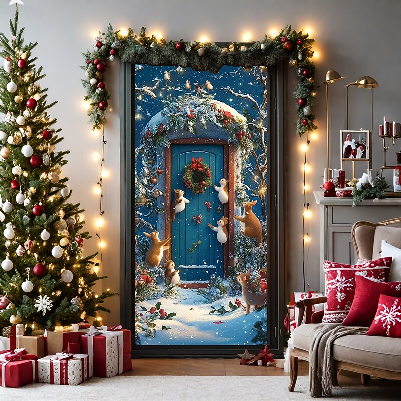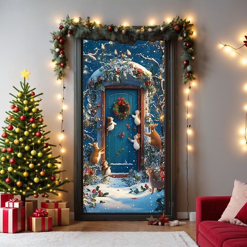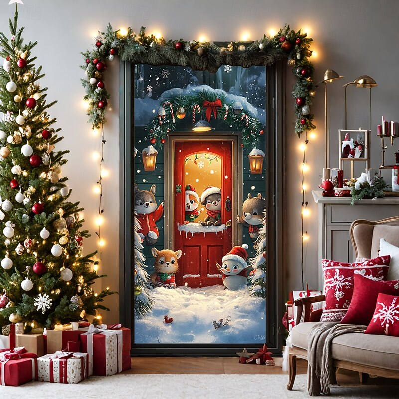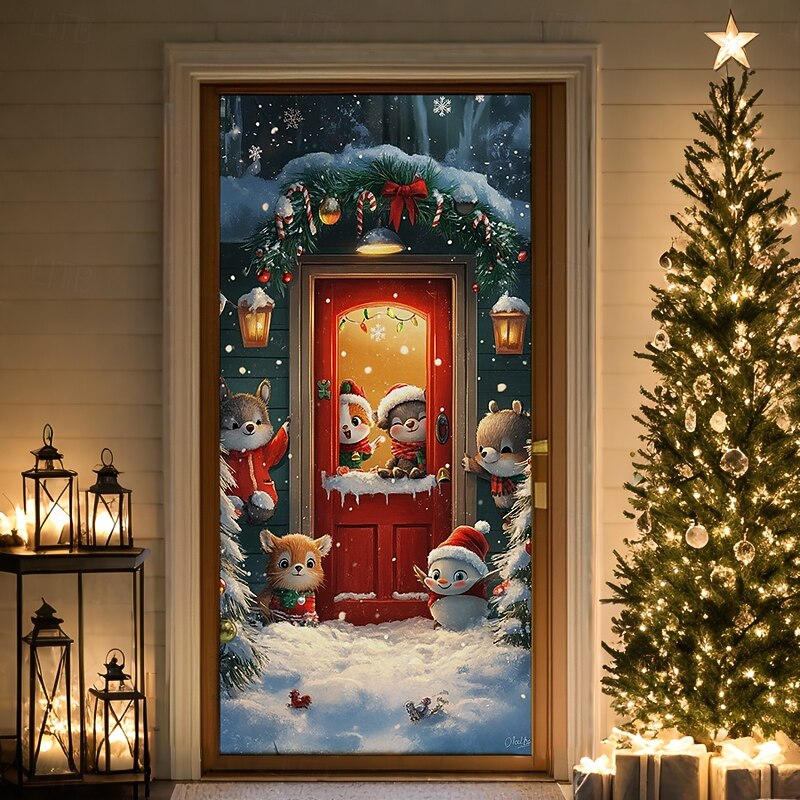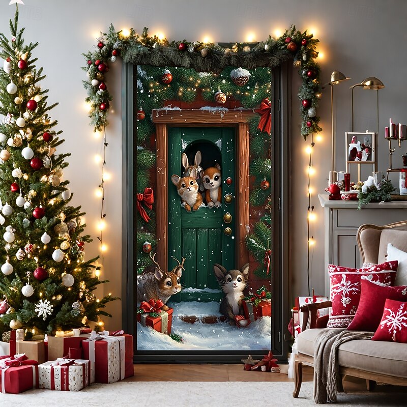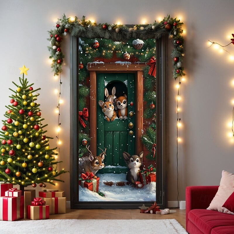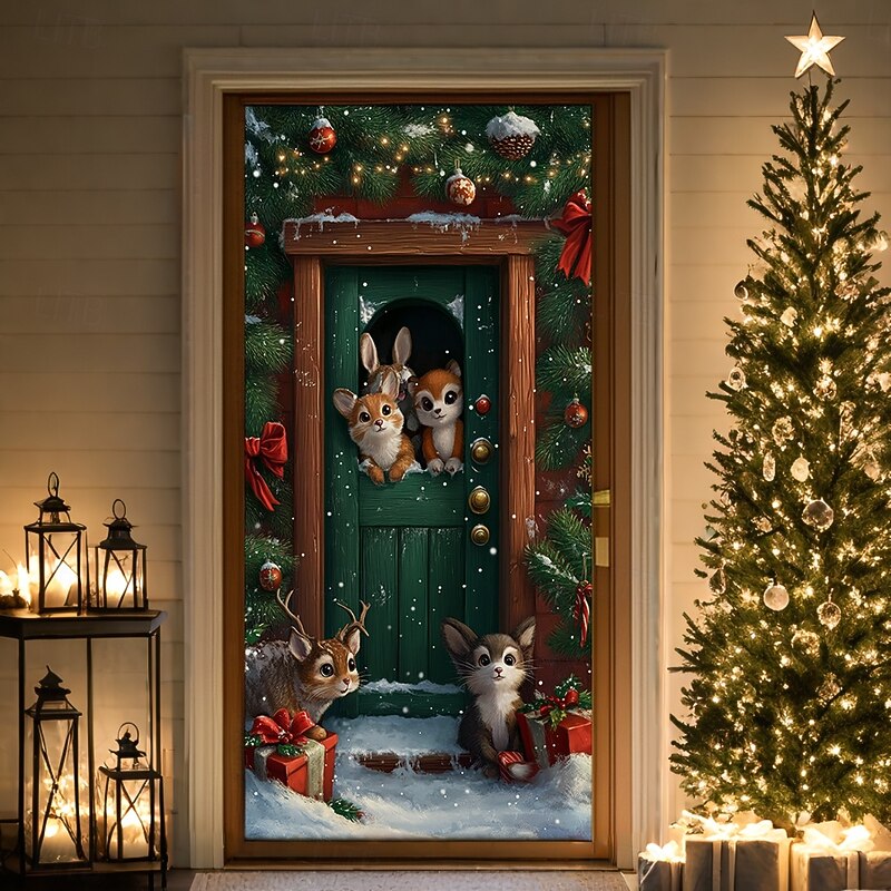 HOT ! Christmas Door Decorations Door Covers Xmas Animals Door Tapestry Door Curtain Decoration Backdrop Indoor/Outdoor Door Banner for Front Door Farmhouse
