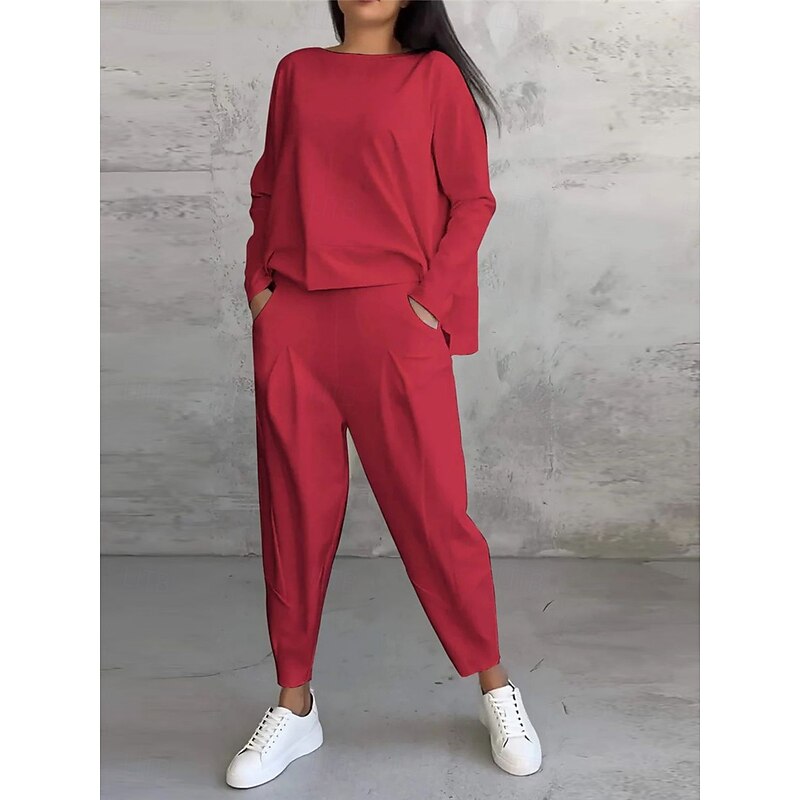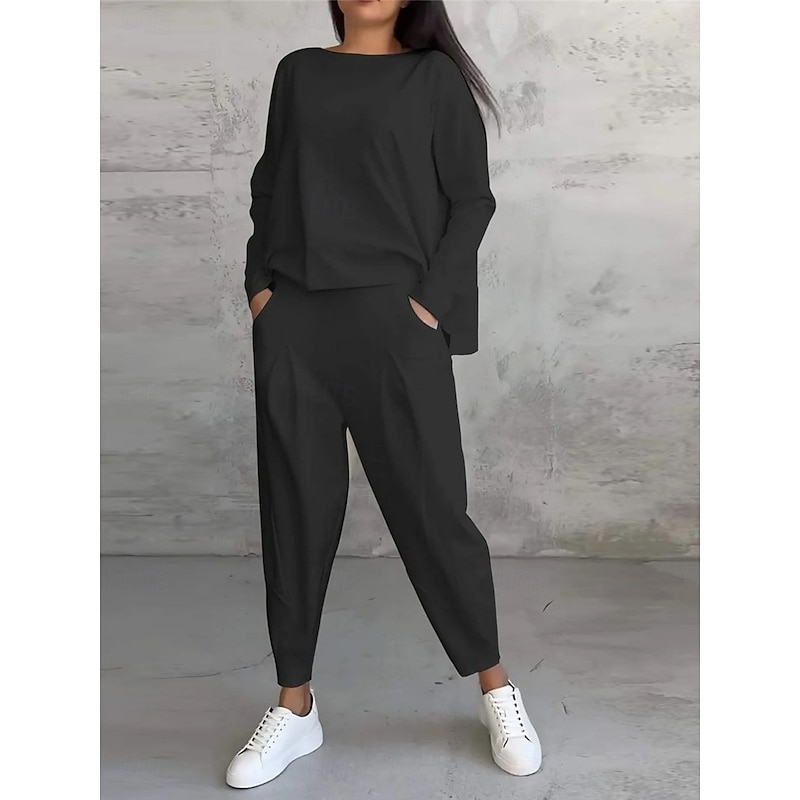 HOT ! Women's 2 Pieces Sweatshirt Tracksuits Long Sleeve Crew Neck Fashion Streetwear Daily Plain Casual Daily Black White Pink Summer Regular Fit