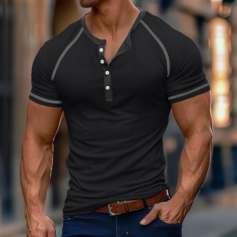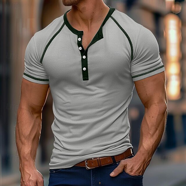 More information about Men's T Shirt Henley Shirt Tee Top Short Sleeve Color Block Vintage Fashion Designer Basic Buttons Henley Vacation Street Going out Summer Army Green Dark Grey Black Henley T-Shirt