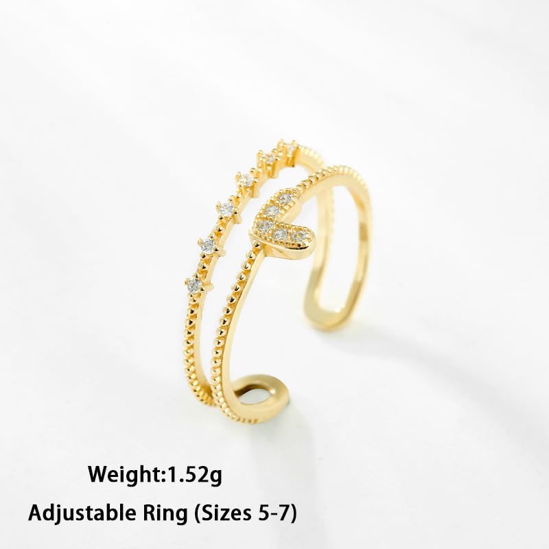 Heart Rings for Women,925 Sterling Silver Eternity Love Heart Promise Statement Ring to Daughter Mother 14K Gold Plated Layered CZ Stackable Open Rings Adjustable Christmas Birthday Jewelry Gift 5