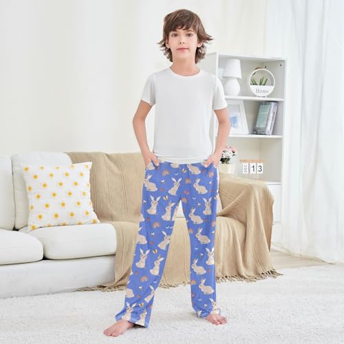 HOT ! Bunny Bee Rainbow Boys Long Pants Soft Trousers Elastic Waist Kids Lounge Bottoms with Pockets S-XL