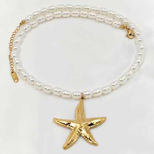 More information about Starfish Necklace for Women Gold Sea Shell Pendant Pearl Choker Necklaces Trendy Summer Beach Jewelry for Women Gift