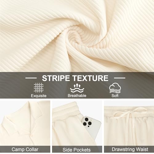 More information about UOUA 2 Piece Short Sets for Men Summer Beach Outfits Stripe Texture Button Down Shirts & Shorts Casual Vacation Set