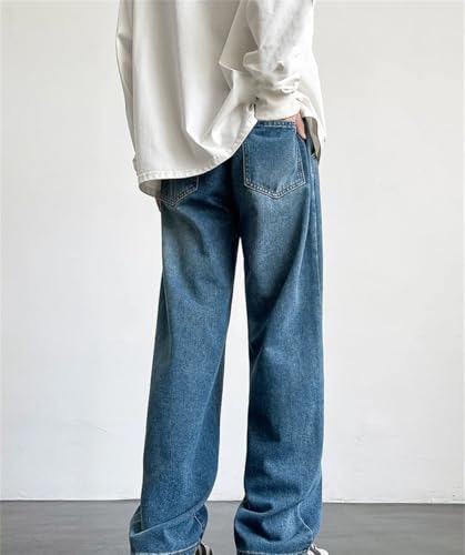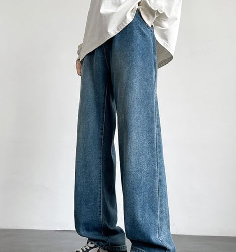 Men’S Straight Leg Korean Style Denim Jeans with Zipper Fly Mid Waist Loose Fit Casual Pants