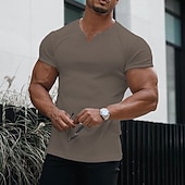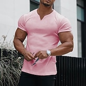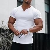 More information about Men's T Shirt Muscle Shirt Ribbed Knit tee Short Sleeve V Neck Summer Plain Fashion Designer Casual Print Street Sports Holiday Black White Pink Top Tee for Men