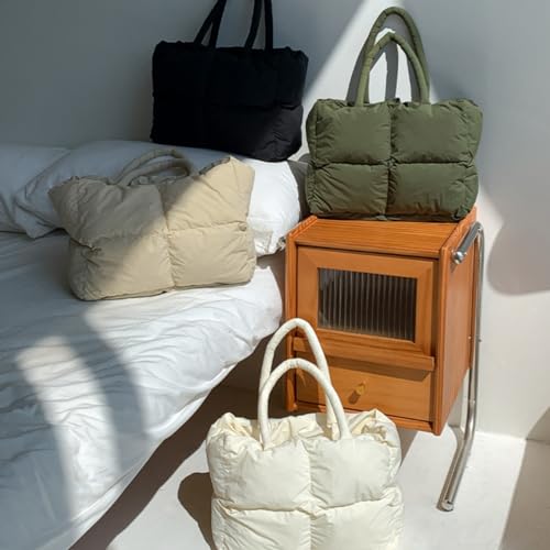 More information about Puffer Shoulder Bag Women's Chic Quilted Puffy Tote Lightweight Winter-Ready Down Padded & Large Capacity Handbag (Off White)