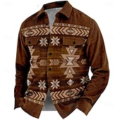 More information about Men's Ethnic Cowboy Corduroy Shirt Shirt Jacket Overshirt Long Sleeve Vintage Tribal Outdoor Dailywear Fall & Winter Turndown Collared Shirts Buttons 3D Print 2 Pockets 1pc Brown
