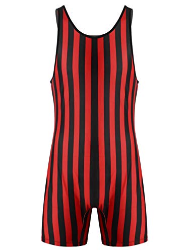 • Men Striped Wrestling Singlet Bodysuit Stretchy Leotard Athletic Jumpsuit