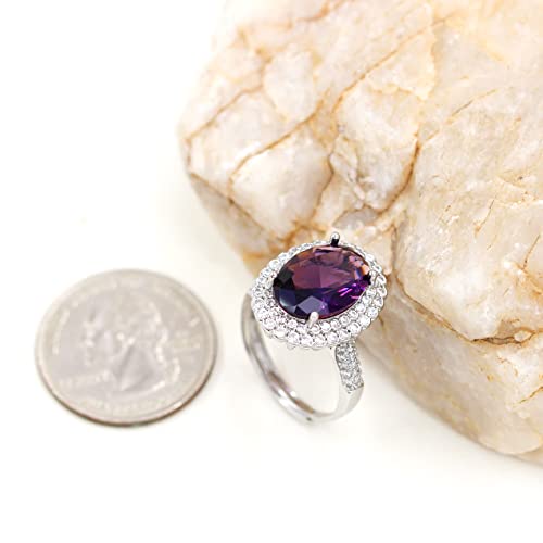 Uloveido Adjustable Platinum Plated Crystal Rings, Big Oval Cubic Zirconia Ring, Solitaire Split Shank Rings Birthstone Jewelry Gifts Y927 7