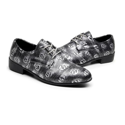 Men's Oxfords Formal Shoes Skull Print Leather Oxford with Lace-Up Black Comfortable Dress Shoes 7