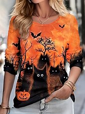 More information about Halloween Women's T shirt Black Cat Graphic Cat Pumpkin Vintage Stylish Classic Long Sleeve Crew Neck Round Neck Regular Tops Daily Print Orange Fall Winter