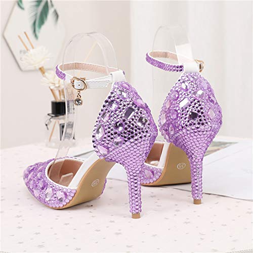 Minishion Womens Ankle Strap Wedding Shoes with Rhinestones Evening Formal Pumps