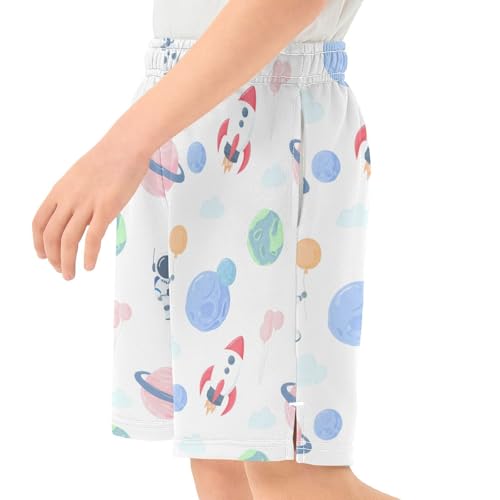 Cute Astronauts Athletic Shorts with Zipper Pockets, Youth Boys Athletic Running Shorts for Summer 2