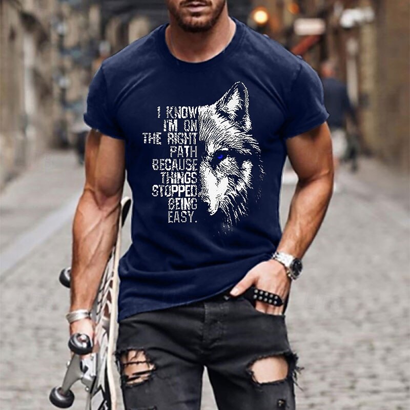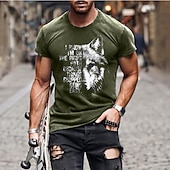 More information about Men's Animal Wolf Letter T Shirt Casual Style 100% Cotton Short Sleeve Graphic Shirt Heather Gray Black Army Green Comfortable Tee Casual Fashion Designer Clothing