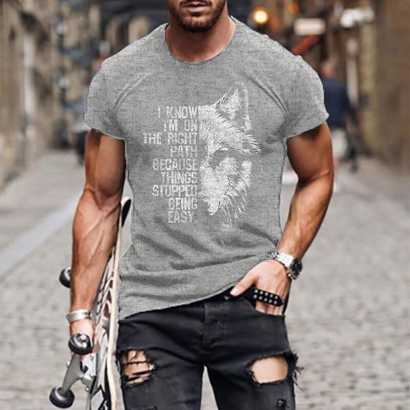 HOT ! Men's Animal Wolf Letter T Shirt Casual Style 100% Cotton Short Sleeve Graphic Shirt Heather Gray Black Army Green Comfortable Tee Casual Fashion Designer Clothing