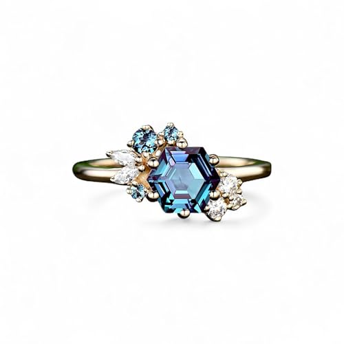 • Magic Color-Change Gemstone: Features a rare hexagon-cut natural/lab Alexandrite center stone that shifts from emerald green (daylight) to ruby red (incandescent light) – a truly mesmerizing vintage statement.