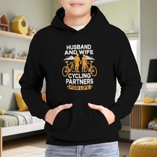 HOT ! Kids Retro Husband And Wife Cycling Partners For Life Boys Girls Lightweight Kangaroo Pocket Fleece Hoodies