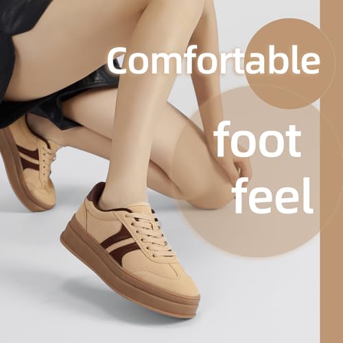 • Design: This platform sneaker features a thick sole of about 1.9 inches, providing stable support and making you look more fashionable and youthful. thickness of the sole visually elongates the leg ratio, making you look taller and more charming.