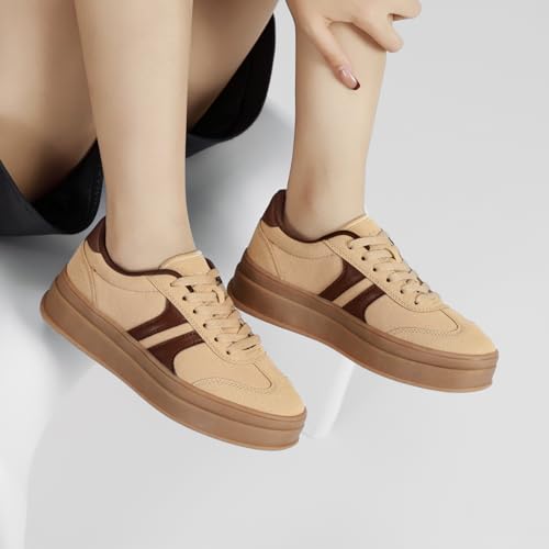 Women's Gum Sole Fashion Sneakers-Thick Platform Sole,Anti-Slip Rubber,Lace-Up Comfort Walking Shoes 4