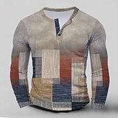 Highlights [Fabric] : Crafted from high-quality polyester, this Henley shirt is both soft and stretchy, offering comfort and durability. The fabric's flexibility ensures ease of movement, making it ideal for daily wear in winter, spring, and fall. [Style & Fit] : This men's shirt features a standard fit that flatters various body types, providing a sleek and modern silhouette. Its long sleeves and stretchy material make it both practical and stylish, perfect for casual occasions. [Design Highlights] : The standout feature of this shirt is its unique faux patchwork pattern in rustic hues of beige, blue, and orange. The Henley neckline with a three-button placket adds a classic touch to the contemporary design, making it a versatile addition to any wardrobe. [Occasions] : Perfect for street style, parties, and casual gatherings, this shirt is designed for men who appreciate fashion-forward yet comfortable apparel. Pair it with jeans or chinos for a refined yet relaxed look, suitable for a variety of settings. [Size Range] : Available in a wide range of sizes from S to XXXL, ensuring a suitable fit for most body shapes. This shirt offers an ideal option for adults looking to enhance their casual wardrobe with a trendy piece.
