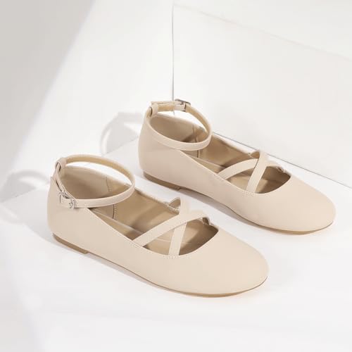 Mofri ShowHow Womens Mary Jane Flats Round Toe Mary Jane Shoes Ankle Strap Ballet Flats Shoes Wedding Casual Office Dress Shoes 5