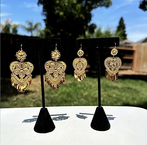 Folklorico Dance Traditional Mexican Gold Filigree Earrings, Heart Shape Earrings, Day of the Dead, Mexican Earrings, Heart Earrings 5