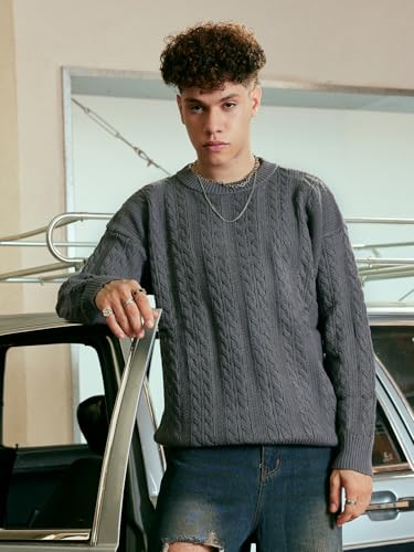 Mens Oversized Sweater Unisex Crewneck Cable Knit Sweater Pullover Aesthetic Streetwear Casual Sweaters Jumper 6